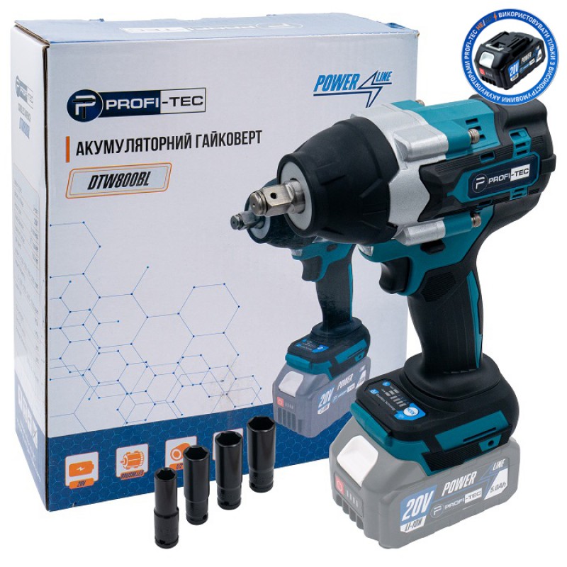 - Аккумуляторный гайковерт PROFI-TEC DTW800BL;