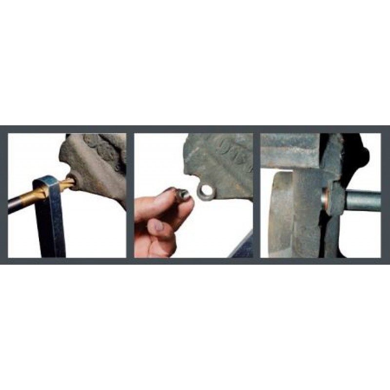 Код товара: 15669, Состав: Набор для востановления резьбы в суппортах RF-916B1: группы VAG,OPEL,FORD M9х1,25 (16 пр.) в кейсе ROCKFORCE Этот комплект был разработан для ремонта резьбы направляющего штифта суппорта в креплении суппорта с использованием вставок из высокопрочной стали. Все тормозные суппорты, используемые на перечисленных транспортных средствах, используют однопоршневые скользящие суппорты спереди, где суппорт скользит по 2 стальным штифтам, которые ввинчиваются в крепление суппорта через резиновые втулки на суппорте. Чтобы снять суппорт, необходимо открутить штифты, что часто вырывает резьбу из крепления. Этот комплект позволяет ремонтировать эту резьбу с помощью прилагаемых резьбовых вставок. Имеется 3 позиционирующих стержня, пользователь должен выбрать правильный установочный стержень, который идеально совмещается с ремонтируемым креплением. Каждый позиционирующий стержень имеет 2 отверстия разного диаметра. Отверстие большего диаметра надевается на один из установочных штифтов, а отверстие меньшего диаметра используется в качестве направляющей сверла. Применяемость:Volkswagen Golf MkIV | BeetleSeat Exeo Estate ST 170Ford Focus | C-MaxVauxhall Astra-G Содержание:10 Сменные втулки с медным кольцом М 9х1,253 позиционирующих стержня для VAG, Vauxhall (GM) и Ford1 специальное корончатое сверло1 Метчик специальный M9x1,251 шестигранный ключ 7 мм