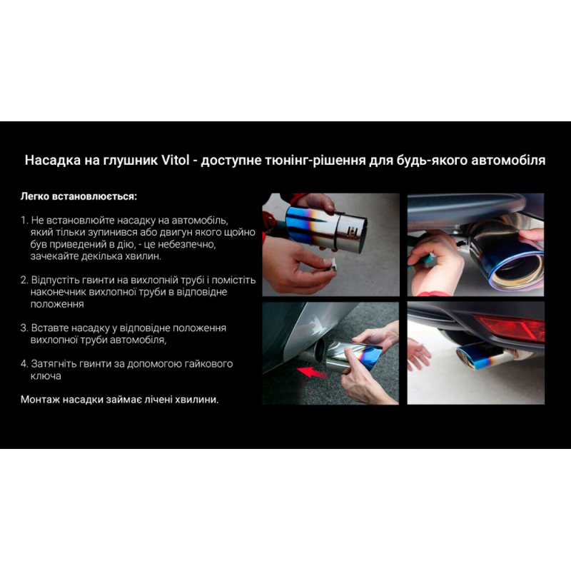 Насадка на глушитель от торговой марки Vitol изготовлена на современном высокоточном оборудовании, что гарантирует высокое качество исполнения изделия.