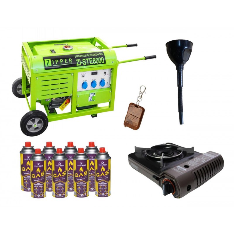 Бензиновый генератор Zipper ZI-STE8000 + газовая плитка Orcamp CK-505 + картридж газовый Pegas 400 мл (8 шт.)