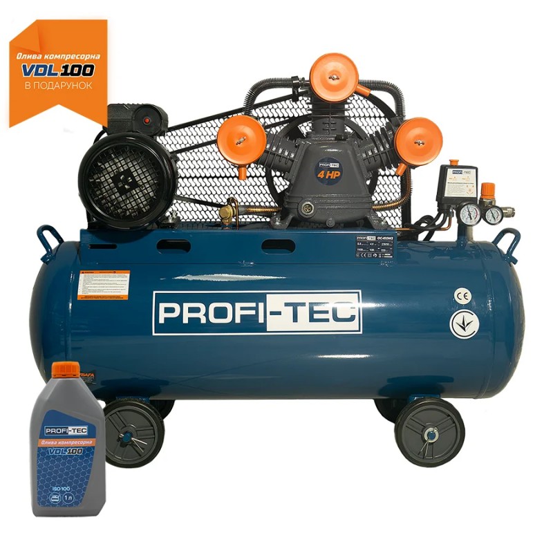 Компрессор масляный PROFI-TEC OC-100W3 (100 л, 3.0 кВт, 530 л/мин)