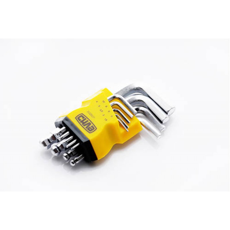 Набор шестигранников 1,5, 2, 2,5, 3, 4, 5, 6, 8, 10 коротких с шаровым наконечником CrV (9шт) СИЛА