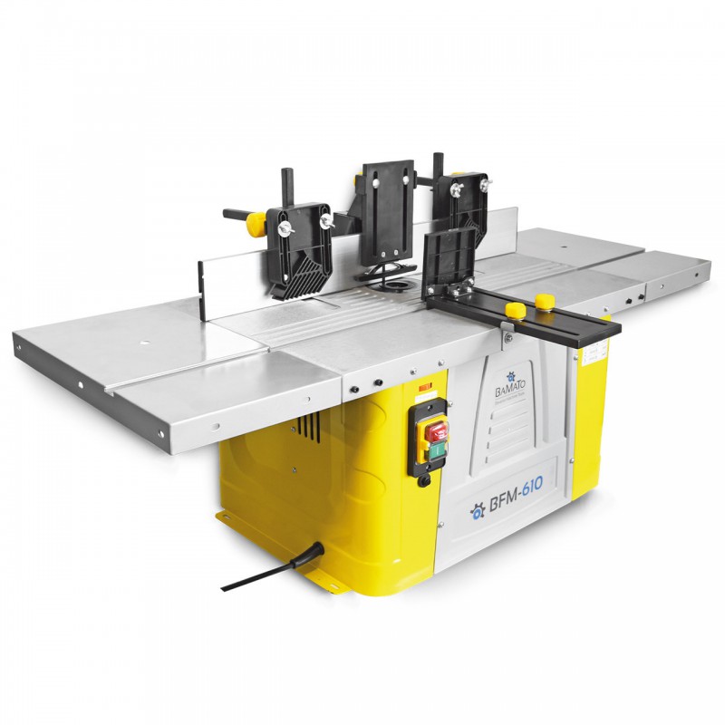 ПРИЗНАЧЕННЯ: Фрезерний верстат BAMATO BFM-610 зі змінним регулюванням швидкості є ідеальним пристроєм для фрезерування профілів і пазів. Завдяки регульованій висоті шпинделя фрезу можна швидко встановити на потрібну висоту. Потужний електродвигун потужністю 1500 Вт забезпечує необхідну потужність. У комплект поставки входять різні цанги для маршрутизаторів, що робить BFM-610 справжнім універсалом. ПЕРЕВАГИ BAMATO BFM-610: Регульована швидкість від 11500 до 24000 об/хв. Потужний електродвигун потужністю 1500 Вт. Регульована висота шпинделя. Стабільні алюмінієві упори з всмоктувальним пристроєм. Стандартно з цангами на 6, 8 та 12 мм. Подовжувачі бокового столу для оптимальної підтримки заготівлі. У комплект поставки входять: 3 цанги; кутовий упор; 2 притискних пристрої; 2-x розсувна деревина; захисний каптур; патрубок під аспірацію.